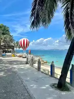 2️⃣ Daxiaodongtian 🌴: First stop of the sightseeing bus, featuring white buildings, coconut groves, and hot air balloons—great for Instagram shots