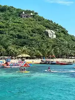 🌟 Dadongtian: Close-up sea play with stunning clear jelly-like water! Also features a full island vibe with coconut groves and white sandy beaches, the popular hot air balloon and white church are here