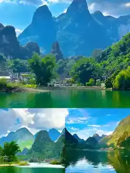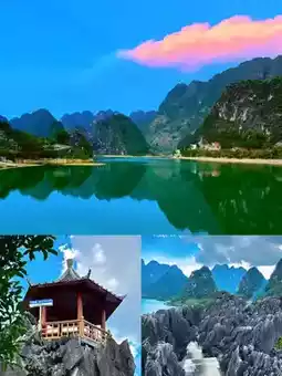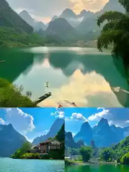 Haokun Lake is a natural freshwater lake surrounded by karst landforms, with crystal-clear water, known as the "Green Gem Lost in the World"💎