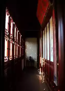 Walking along the meandering corridors, one side reveals delicate lattice windows, through which picturesque scenes shift like slides. On the other side, the clear lake shimmers, dotted with lotus leaves and blossoms 🌸, with fish occasionally darting playfully in the water, creating a vivid picture of "fish playing among lotus leaves."