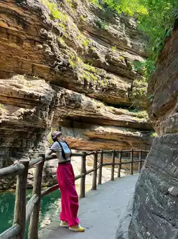 Arrive at Peach Blossom Valley ➡️ Huanglong Pool ➡️ Nine-Connected Waterfalls ➡️ Taihang Sky Road & Heavenly Mirror Viewing Platform (direct sightseeing bus) ➡️ Glass Suspension Bridge ➡️ Descend (via sightseeing bus)