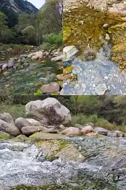Starting from the scenic area shuttle bus terminal, it takes just 5 minutes to reach the Rainbow Viewing Platform, the best spot to photograph the waterfall rainbow, capturing the waterfall, rainbow, and red leaves in one stunning frame. Continuing forward leads to a shallow creek where the water barely reaches your ankles and is crystal clear. Kids can play in the water and catch shrimp here, with sunlight sparkling like scattered gold on the surface. The route is almost flat with no climbs. When tired, sit on the stone bench at the Water Curtain Cave and enjoy a baked flatbread—pure comfort.