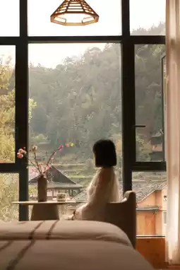 ❷ **Panoramic Floor-to-ceiling Windows**: Open windows to view terraced fields/drum towers, capture sunrise over sea of clouds + night lights all in one