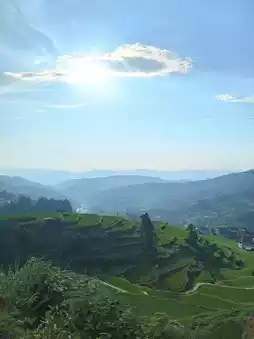 🔸 Take a minibus to Tang'an Terraces to watch the sunset 🌤️ (round-trip ticket 20 RMB) The layered terraces glow golden under the sunset, stunningly beautiful, every shot is a masterpiece.