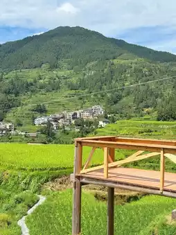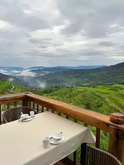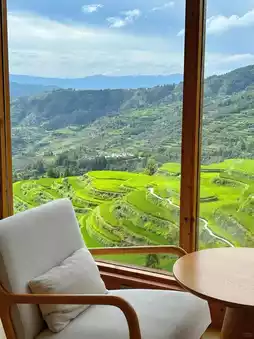 Nestled among the Xia Ge terraced fields, with views of the mountains and rice paddies right outside your window.