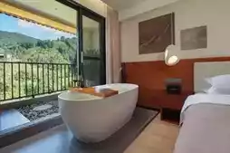 The room really stole my heart! I stayed in a mountain view room with an incredible view. The huge floor-to-ceiling window faces the rolling green mountains and the rooftops of the Dong Village 🌄. I woke up to birdsong in the morning, and when I pulled back the curtains, I saw clouds drifting among the mountains. Every photo I took was like a masterpiece for my social feed! The interior features natural wood and cotton-linen style, and the bedding is so soft it feels like being wrapped in clouds ☁. Even the toiletries are niche aromatherapy brands—so many thoughtful details that touched me deeply!