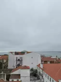 Over the red rooftops of Lisbon, in Santa Justa