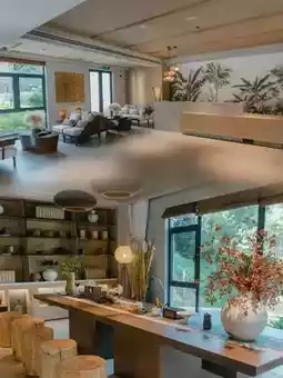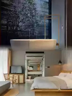 The rooms are designed with simple elegance. Wooden furniture complements the soft lighting, creating a warm and comfortable atmosphere. The bedding is soft and comfortable, ensuring a good night's sleep. Some rooms have extra-large balconies with lounge chairs and tea tables, perfect for enjoying tea and the scenery. The bathrooms have separate wet and dry areas and are equipped with niche but high-quality toiletries, showing great attention to detail.