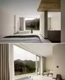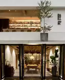 Zhu·85 embodies the design concept of "Living·Home." Its white, translucent exterior blends traditional Jiangnan "white walls and black tiles" with innovative local architecture. The designer stacked "wooden cubes" to create a facade of interwoven light and shadow, complemented by floor-to-ceiling windows that seamlessly bring the landscape indoors. The sunken bar features movable glass windows, framing picturesque scenes rain or shine, while the warm orange glow of the reading nook sets the mood for book clubs or intimate gatherings—perfect for both quiet and lively moments.