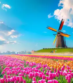 Windmill Village Slow Tour; Hot Dutch Pancakes in the Village; Tulip Fields Walk + Keukenhof Garden Grand Prize; Return to Amsterdam City