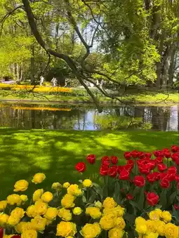 Keukenhof is located in Lisse, about 40 minutes from Amsterdam by bus or car 🚍🚗.