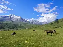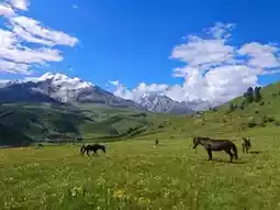 A Tibetan-style village surrounded by snowy mountains, wildflowers everywhere in July and August! Suitable for light hiking, with chances to see marmots and Tibetan horses