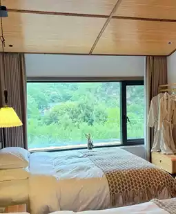There are double rooms with bathtubs 🛁, family-friendly triple rooms, and loft quadruple rooms for friends and family with a mahjong table and a large balcony. The whole house has an intelligent voice control system, and when you open the curtains, you feel like you're nestled in the clouds ☁️