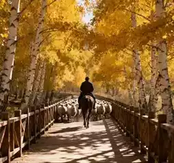 In October, the ranch is dressed in golden hues, with the distant Qinling Mountains ablaze with autumn colors, and morning mist swirling like a fairyland