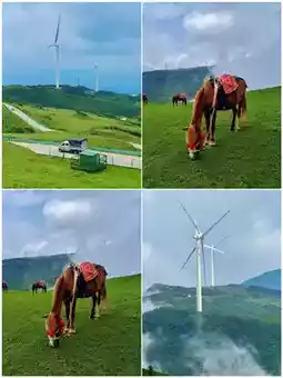 The drive to Wumeng Grassland did have some traffic đđ¨ But when we rounded the last bend and saw endless windmills and grasslands, everyone in the car screamed with joy! Under blue skies and white clouds, cattle and sheep grazed leisurely while windmills spunâevery photo looked like a desktop wallpaper. Though we queued for shuttle buses, the mountain breeze and views felt like free sightseeing, never annoying~