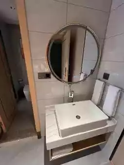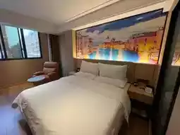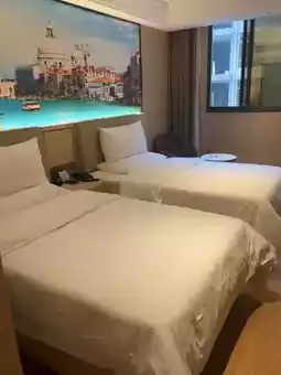 Moving to the guest room area, different types of rooms cater to your diverse needs. The twin rooms are neat and bright, with two spacious and comfortable beds, and soft, skin-friendly bedding that gently envelops you like clouds. The king rooms, on the other hand, are more cozy and tranquil; lying on the comfortable king-size bed, a day's fatigue can be dispelled. The background wall of each guest room is adorned with beautiful city landscape murals, as if opening a window to beautiful scenery for you, allowing you to experience a unique charm even indoors. The rooms are fully equipped with amenities, including clean and hygienic private bathrooms, and neatly arranged toiletries, providing you with the convenience and peace of mind of home. Whether for business travel or leisure, this place can offer you a comfortable stay.