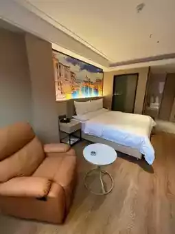 Stepping into the hotel lobby, soft lighting illuminates the simple yet stylish decor, instantly soothing your travel weariness. The light-colored sofas are soft and comfortable, inviting you to sit for a while, chat with companions, or quietly enjoy your own leisure time. On a nearby bookshelf, various books and exquisite ornaments are neatly arranged; pick up any one, and accompanied by the subtle, gentle music of the lobby, you can immerse yourself in the world of words, forgetting the outside hustle and bustle. If you feel a bit thirsty, the tea break area is already prepared with comforting hot drinks and snacks; holding a cup of hot tea and taking a bite of a snack, a sense of physical and mental satisfaction will naturally arise.