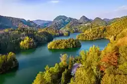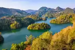 In early winter, the Baili Rhododendron Lake within the Baili Rhododendron Management Area in Bijie City, Guizhou Province, located in the heart of the Wumeng Mountains, is ablaze with autumn colors. The lake and mountains create a stunning, colorful landscape. Here, the mountains and water complement each other, and the roads and scenery enhance one another, making it perfect for a weekend self-drive trip to enjoy the beautiful scenery and relax your mind.