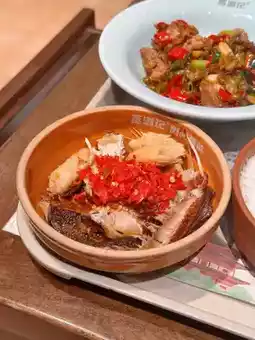 The smoked fish is fried until crispy and stir-fried with chili, delivering a smoky aroma and fresh, savory taste. 😋