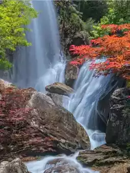 Recommended route: Take the cable car (about 50 RMB per person) to the mid-mountain, hike down while enjoying waterfalls, unique rocks, and primeval forest along the way.