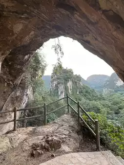 - A close combination of karst landforms and ethnic customs, surrounded by green trees and picturesque scenery.
