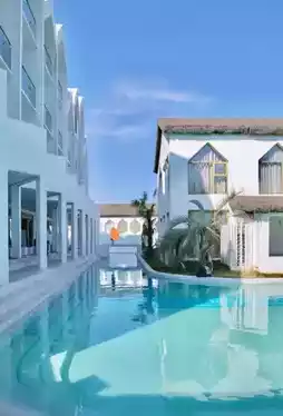 The swimming pool, beach, and palm trees surrounding the building make you feel like you're on a beach vacation in Southeast Asia. It truly deserves to be called the "Little Maldives" of Jiangsu.