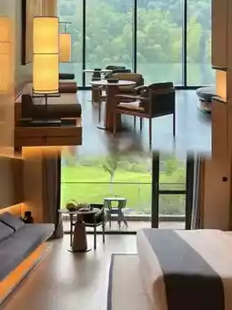 The rooms are simply decorated yet luxurious, with all the facilities you need. The bedding is soft and comfortable, and you can sleep with peace of mind. The view from the balcony in the room is excellent, and you can enjoy the natural scenery outside. The bathroom is separated from wet and dry, and the toiletries are of good quality, full of high-end feeling.