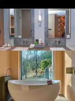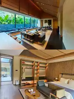 ✨The design of the hotel's exterior blends the local style of Liyang. The stone-gray architectural exterior walls are matched with the blue-gray roof, retaining a bit of the rustic native feel between the countryside. In the design of the hotel garden and the layout of light and shadow, more modern design language is incorporated, continuing the graceful tranquility of the Jiangnan water town, and harmoniously coexisting with the surrounding green wilderness. Nestled amidst a natural oxygen bar, you can feel connected to nature everywhere in the property.