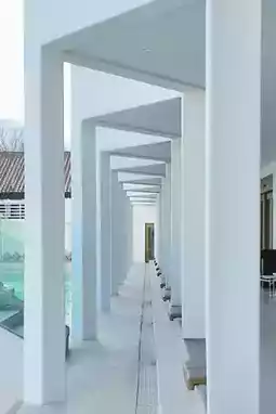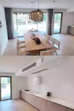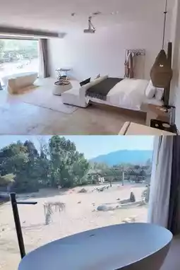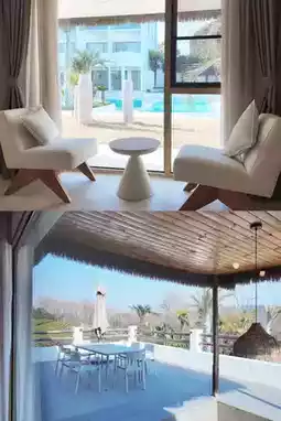 Waking up to the vast beach and blue sky through the large floor-to-ceiling windows in the morning🏖️ Unique white architecture and various luxurious facilities📹