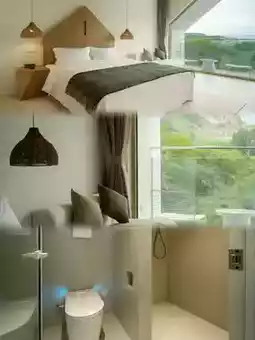 🌟Highlights: It takes only a short taxi ride to Nanshan Bamboo Sea. As soon as you enter the lobby, you can see that the decorative elements have many Southeast Asian styles. The front desk staff were also proactive in greeting guests, especially the porter who helped with luggage delivery to the room and introduced some of the facilities in the room as well as the snacks and drinks provided in the mini bar area. The room is equipped with a Dyson hair dryer, and a full set of toiletries are from L'Occitane. The small refrigerator in the room is very cute. There is no TV, so you can use a projection screen. The bath is also very nice, with a large bathtub and a disposable bathtub cover. The hotel has a large swimming pool and a small hot spring. KTV, billiard room, chess and card room, beach, tents are all available, which is very suitable for company team building.