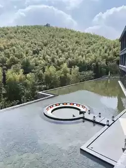 The 77 guestrooms are cantilevered along mountain streams, each featuring in-room pH8.6 metasilicic acid hot springs and hand-built Yixing purple clay bathtubs. The central bath hall replicates the white marble pool from Famen Temple's underground palace, with a dome adorned by 30,000 glazed Tang-style floral pattern tiles.