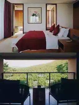 Each villa features a private hot spring pool, drawing natural geothermal water indoors for a healing soak without stepping outside.