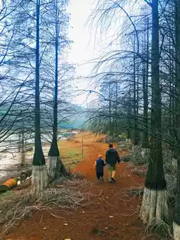Two ultra-niche spots with incredible atmosphere. Two days of rain left the already vague routes shrouded in mist. After some exploration, we found Daxi Reservoir—a literal ink-wash painting. The dried-up water revealed redwood roots rarely seen in summer. More like wetlands than a reservoir, the soft ground and foggy backdrop made it feel like wandering through a painting.