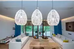 ✔️ Use a wide-angle shot in front of the villa’s bamboo fence for long-legged effects for both you and your dog.