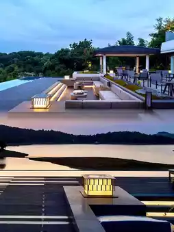 The courtyard incorporates Eastern aesthetics – square architecture paired with crescent lawns creates yin-yang harmony. Pine trees throughout add Zen-like tranquility amidst nature.