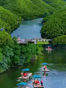 - Drift on a bamboo raft across serene Jing Lake
