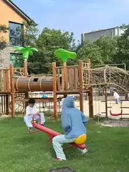 Non-powered facilities, slides, swings, climbing frames 🛝 Digging sand in the sandbox until sweaty, feeding alpacas 🦙 at the nearby cute pet farm, and soft fluffy kittens to pet in the cat café next door, cat-loving kids just don’t want to leave~