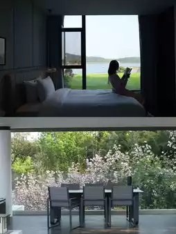 ✅ Panoramic Tianmu Lake at Your Door: 65㎡ floor-to-ceiling windows frame the emerald waves🌊—misty days paint the lake in Monet-esque gray-blue, while sunny days dazzle with golden ripples that leave you speechless! Lounge on the sofa, listening to the waves, and instantly switch to "off-the-grid" mode~