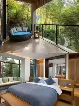 - Villas built on both sides of the valley, open the window to see layers of bamboo sea, the wind sounds like a martial arts movie scene;