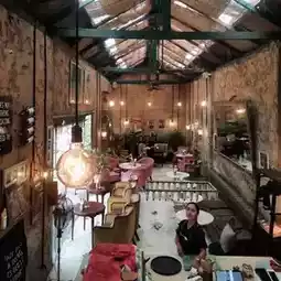 The eclectic design adds a unique charm, especially when enjoyed from the balcony view. We ordered the pita and toast sandwich, both of which were delicious. The juice serving size was reasonable, unlike some other places. I also tried the banana with espresso drink, which was excellent.