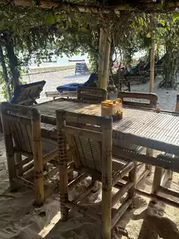 The menu features fresh, locally inspired dishes, perfect for refueling after a swim or a long walk on the beach. A cold coconut or a tropical juice is a great way to cool down, while the flavorful Indonesian dishes—like grilled seafood, nasi goreng, and curries—are satisfying and well-prepared. 🥥🍉🍛