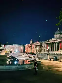 Begin in Trafalgar Square, where the National Gallery is beautifully lit up. The fountains and Nelson’s Column set the perfect mood for your walk.