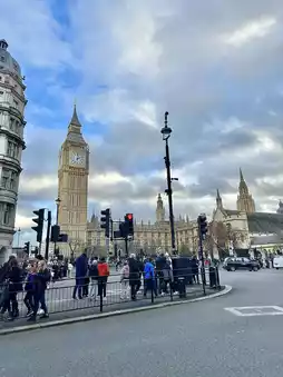 One of the must-see landmarks in London is Big Ben!! BIG BEN! It's stunning from afar, and its beauty shines both day and night!! As a popular hotspot, there are often lines of people waiting to take photos with Big Ben~! The iconic red telephone box is also a great spot for photos with Big Ben!! Due to its popularity, the line here is really long!