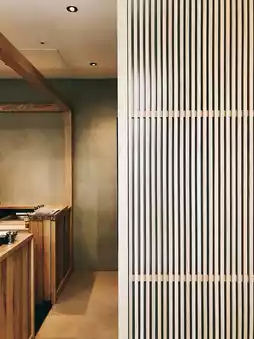 The interior features a bar-style design with a one-barista-to-one-customer service, focusing on a sense of ritual and the craft of coffee brewing.