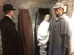 Additionally, there are wax figures of various characters for photo opportunities, and a small souvenir shop where you can purchase Sherlock Holmes-related items like books, postcards, or decorative pieces.