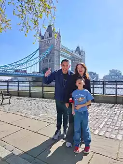 Tower Bridge is a landmark that many mistakenly think is London Bridge, but that's not the case. The two bridges are simply located near each other. Tower Bridge is a popular photo spot for tourists visiting London. This bridge is unique as it can open to allow boats to pass through. Its stunning design, featuring ancient-style architecture, makes it a magnificent sight by the River Thames. It's guaranteed that anyone visiting London will want to take a photo here, as every angle offers a beautiful shot. On sunny days, the photos turn out even more spectacular. Getting there is easy—take the underground to London Bridge station, walk a short distance, and you'll arrive. Alternatively, you can take a bus for convenience. If you're visiting London, don't miss the chance to stop by and capture some memorable photos!