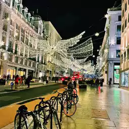 After sunset, Regent Street glows with glamour — ideal for a night stroll.