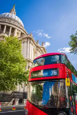 Ride a classic red bus and take in the city views from the top deck like a local.🚌