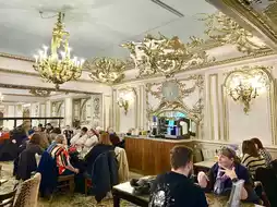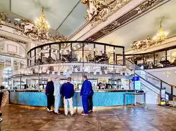 ✨ Palatial Victorian splendor: Gilded plasterwork, 20-foot ceilings, stained glass, and crystal chandeliers — pure railway-age grandeur.