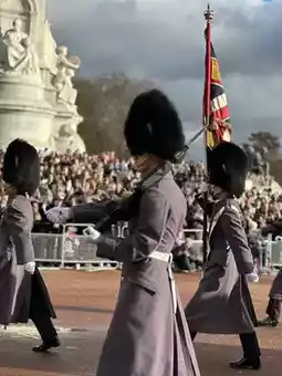 We stood in front with dozens of others, but it didn’t feel crowded, just shared. Cameras clicked, flags fluttered, and for a while, the buzz of London faded under the weight of gold-trimmed railings and stone balconies. The Changing of the Guard ceremony added that familiar rhythm of drums and boots 🥾 so choreographed it felt both ceremonial and personal, like the city was giving a small performance just for you🥁🧤